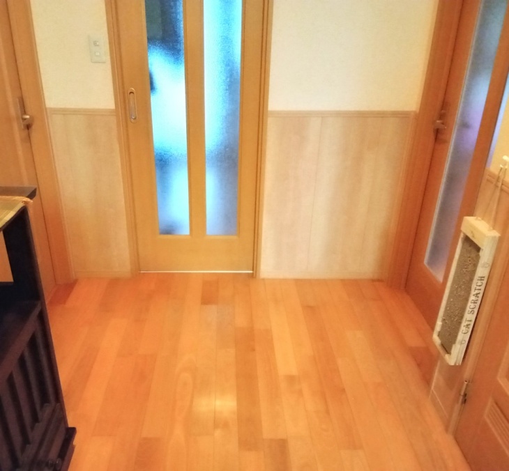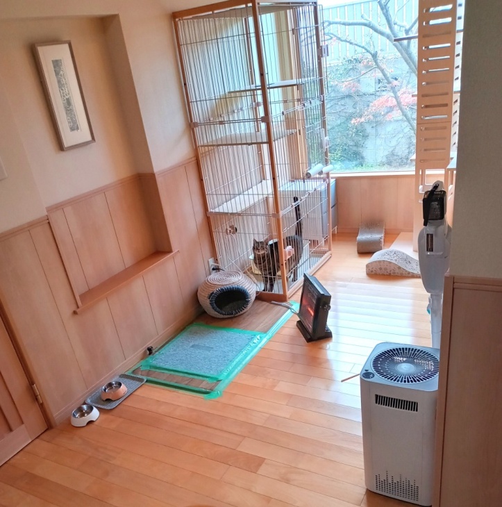 玄関のそばにネコ🐈専用スペースを設けておられるので、きっと快適な場所なんでしょうね。