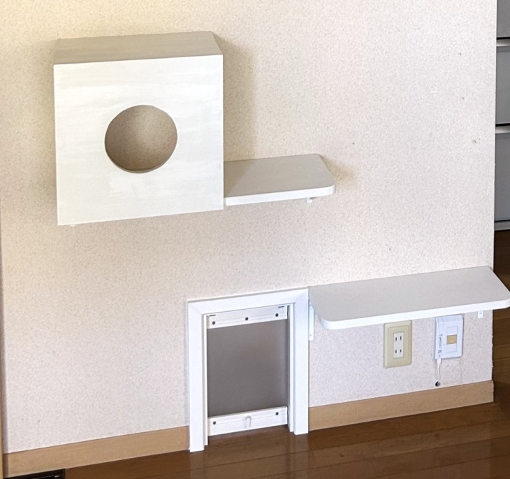 そしてこちらは、壁をくりぬいて設置した出入り口と遊び心満載のキャットウォーク。