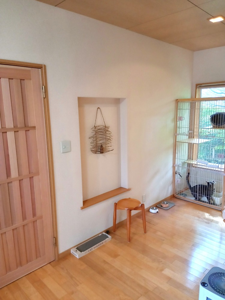 玄関のそばにネコ🐈専用スペースを設けておられるので、きっと快適な場所なんでしょうね。