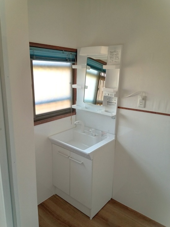そして、タイルが貼られていた洗面所はクロスを一掃して清潔感のある明るい空間に。