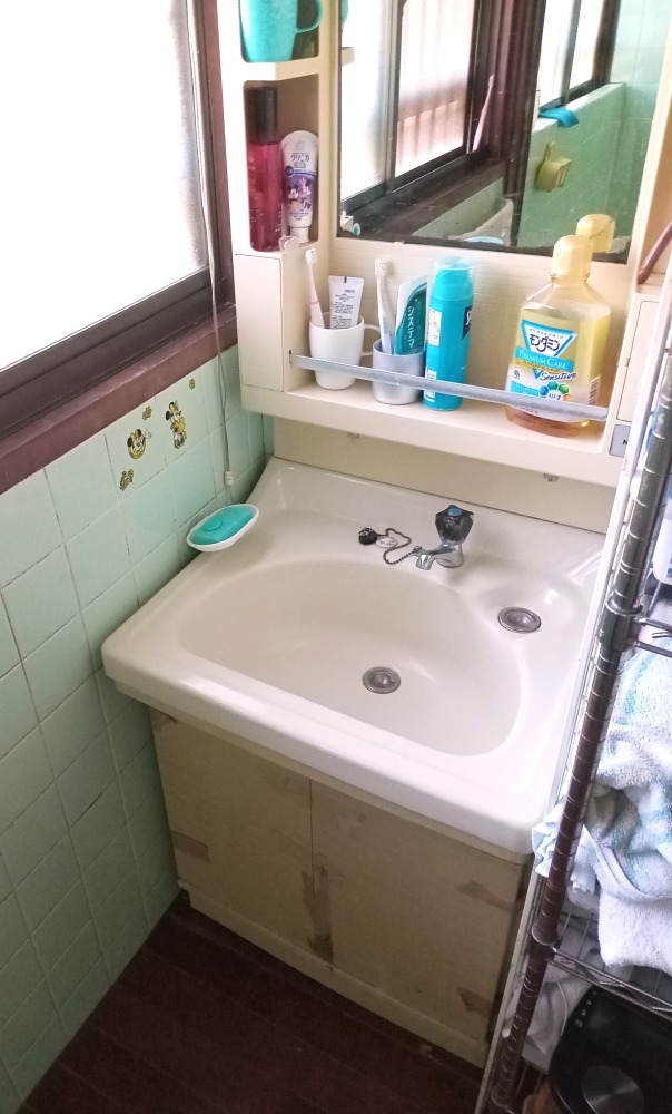 洗面台下キャビネットの扉の部分は使用に支障がありそうです。
