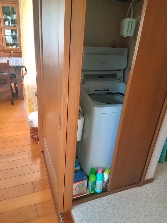 洗濯機置き場に両開きのドアがありましたが、片方のドアは壊れたため取り外して
