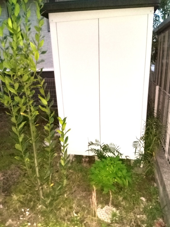 室外機や汚水桝などの周りにも丁寧にレンガチップを敷いて、雑草対策完ぺきです。