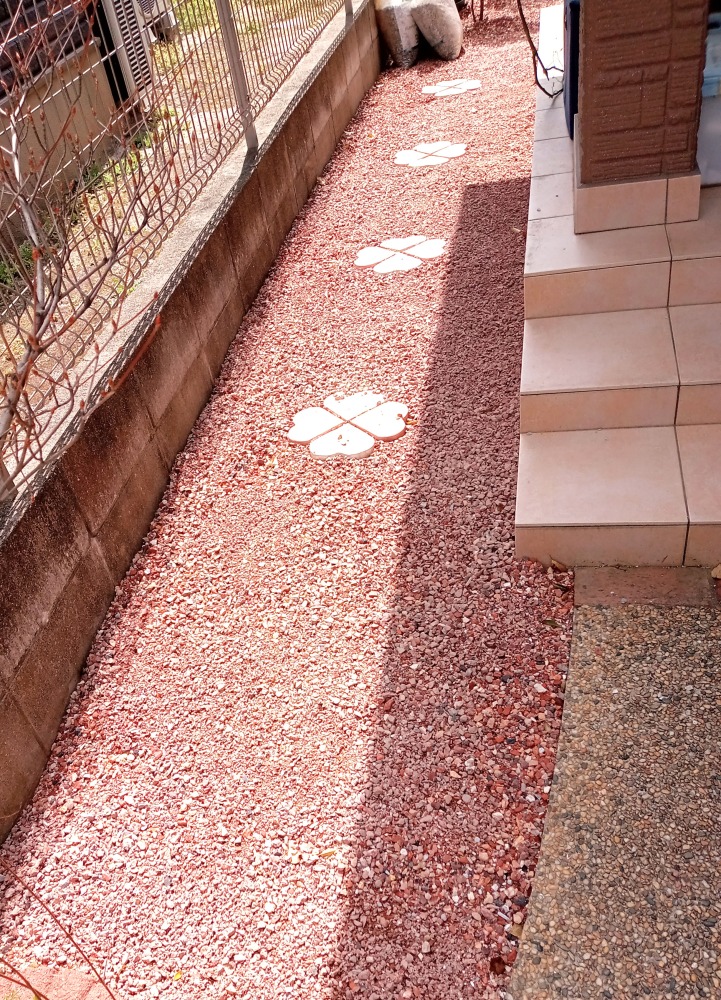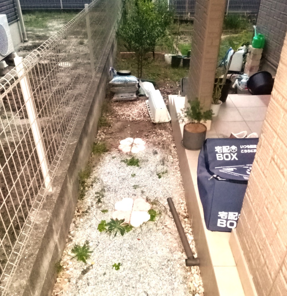 今回は防草シートとレンガチップの組み合わせで雑草対策を施しました。