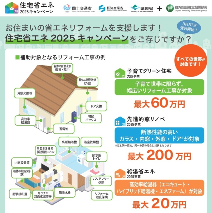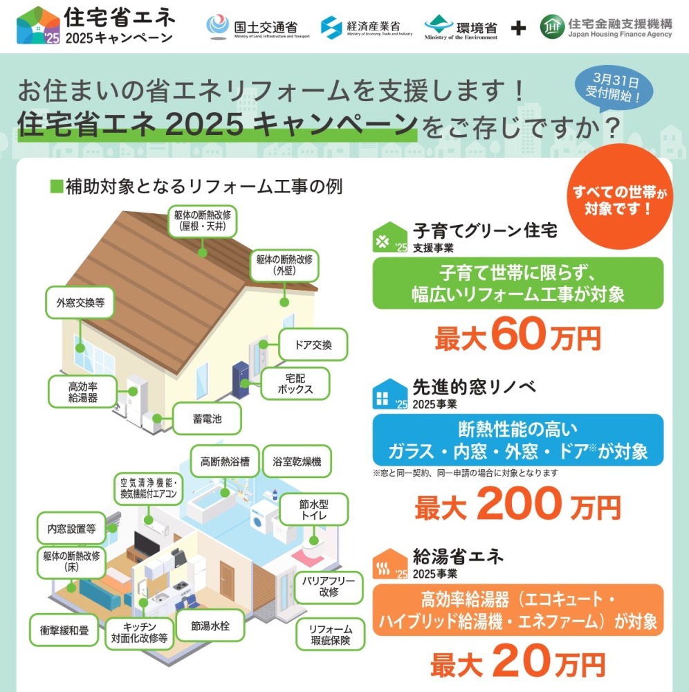 今年も住宅省エネ2025キャンペーンが始まっています。